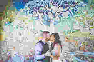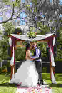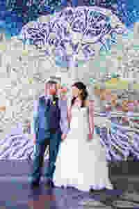 The ceremony conducted by the ever fabulous Nicole Penning took place in the beautiful garden of the Batesford Hotel near the historic bridge. A lovely little love-lock ceremony was held where everyone locked their padlock on to the symbolic tree. We traipsed off back to the BNB and took photos in the very amazing studio…a whole wall as a mosaic of the Tree of Life made from recycled china pieces. The Dog Rocks themselves provided another spectacular backdrop for the bridal party, and then we trundled back to the rather awesome Batesford Hotel. (Delicious food by the way!)