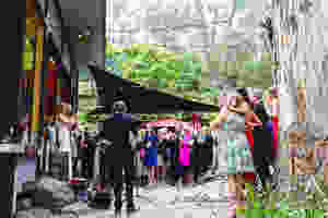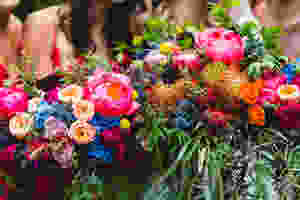 The reception ensued with an amazing feast provided by Qdos surrounded by works of art and the most amazing and fitting decor. The guests were given little native trees to plant - perfect gift as Al works in Landcare Australia. Also guests were given the opportunity to take home posies of gorgeous flowers - Gillian Pollard again - from the indoor forest of flowers. Wow! The speeches were given, wine was enjoyed, and the night was danced away.